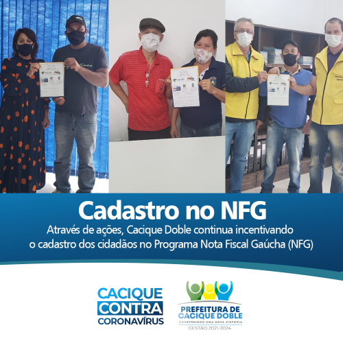 O Município de Cacique Doble continua incentivando o cadastramento no Programa Nota Fiscal Gaúcha (NFG).