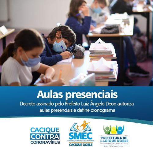 O Prefeito Luiz Ângelo Deon assinou Decreto na última quinta-feira, dia 06 de maio, autorizando a retomada das aulas presenciais no Município. De acordo com o documento, o cronograma ficou assim estabelecido: