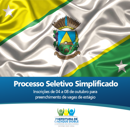 A Administração Municipal de Cacique Doble abriu o processo seletivo para preenchimento de vagas e formação de cadastro de reserva para estagiários com o período de inscrições dos interessados se estendendo de 04 à 08 de outubro. O encaminhamento das inscrições deverá ser feito junto ao setor de Recursos Humanos na prefeitura municipal das 08h30 às 11h e das 13h30 às 16h.