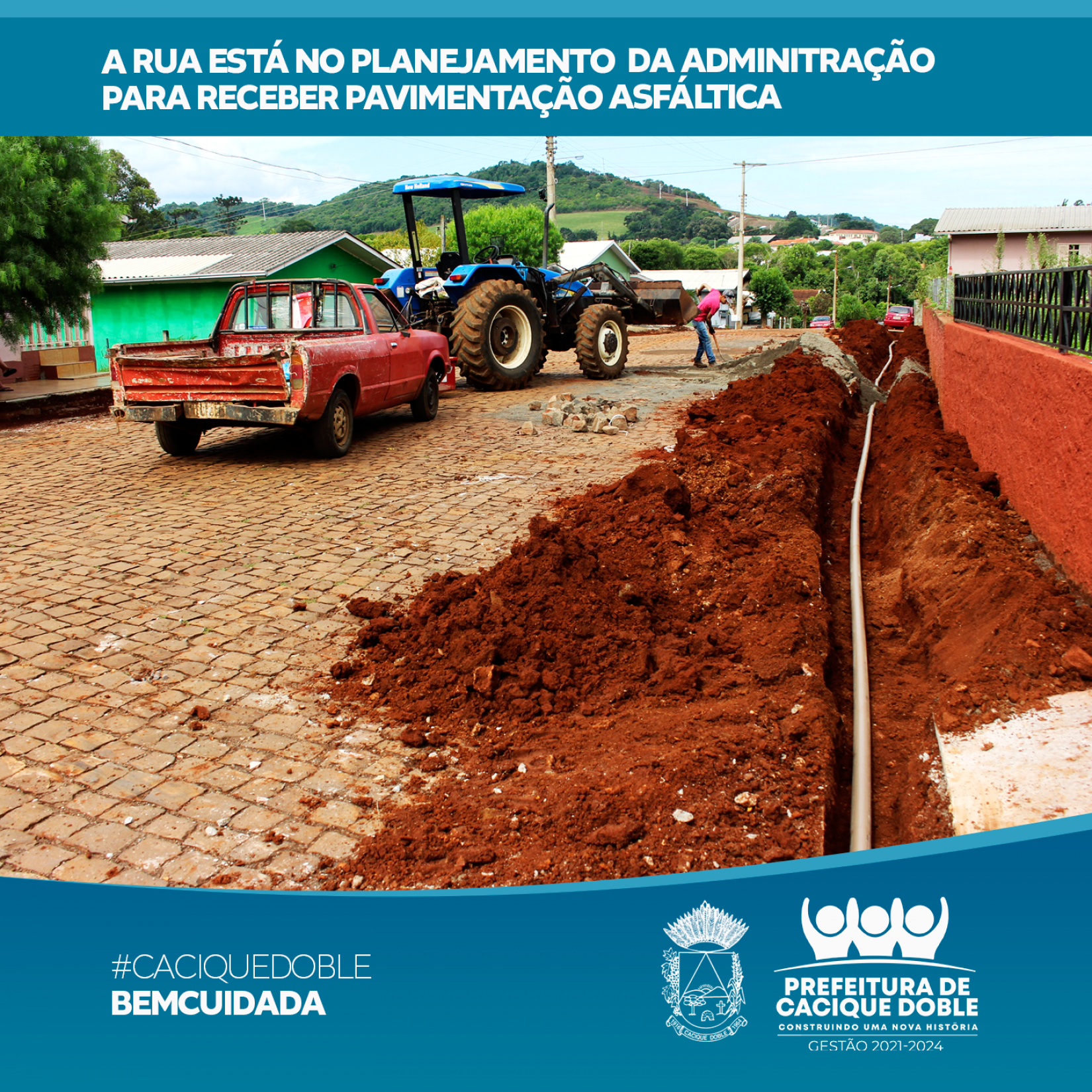 Um trabalho em conjunto do Governo Municipal de Cacique Doble - Secretaria de Urbanismo - e Corsan, está alterando o local da passagem das redes de água na Rua João Bianchin, no centro do município. A nova rede, com material novo, está sendo instalada às residências. As obras surgem pelo interesse da Administração Municipal em pavimentar a rua desde a Avenida Guarani até a Rua Ricardo Zeni (ponte do rio Cará)