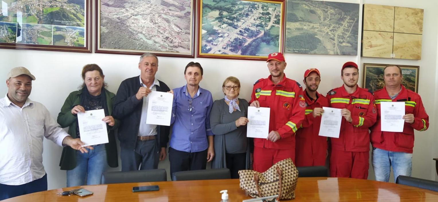 O ofício da confirmação de transferência foi entregue no dia 04 de julho na presença do Prefeito Municipal Luiz Ângelo Deon, Presidente do Legislativo e Bombeiros Voluntários.