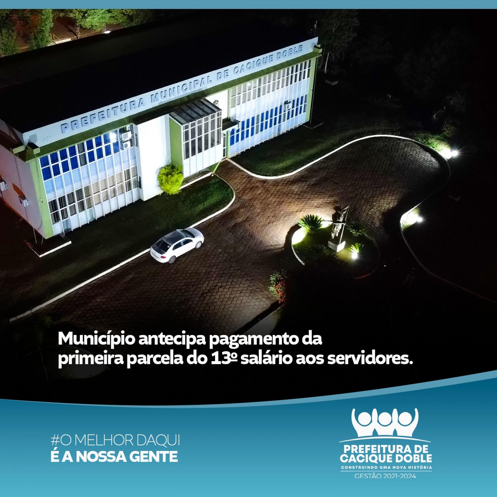 O Município de Cacique Doble realizou a antecipação da primeira parcela do décimo terceiro salário possibilitando um rendimento extra aos servidores municipais já neste mês de julho.