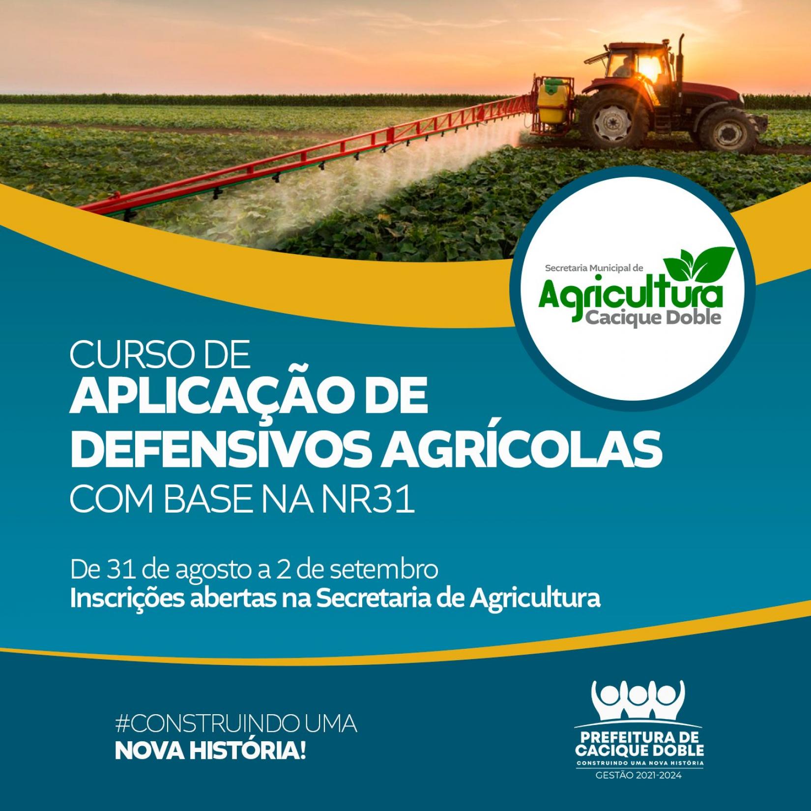 O Governo Municipal de Cacique Doble segue dando oportunidade para os produtores rurais do Município. Desta vez, através da Secretaria de Agricultura, promove o Curso de Aplicação de Defensivos Agrícolas com base na NR 31.