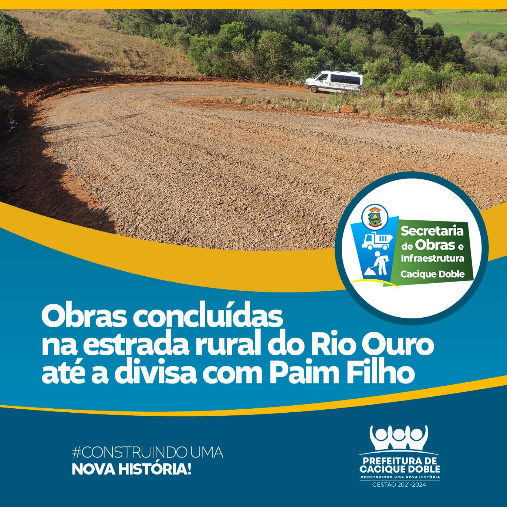 As equipes da Secretaria Municipal de Obras finalizaram o trabalho de manutenção da estrada rural da comunidade Rio Ouro que passa pelo Camping Confortin até divisa com Paim Filho.
