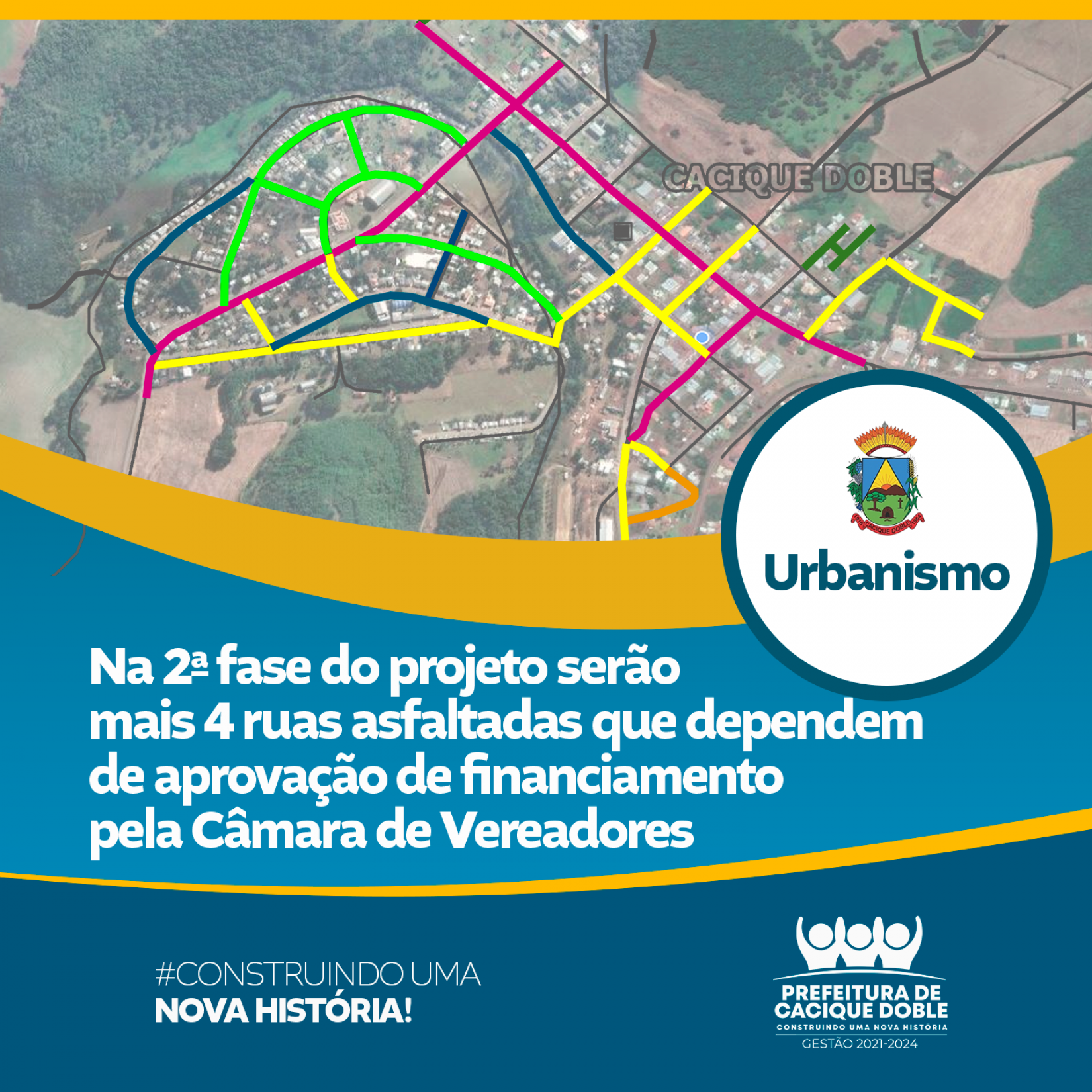 A Administração Municipal de Cacique Doble investiu recursos próprios para a primeira fase de pavimentação asfáltica em cinco ruas do município. Além da rua João Bianchin, o Governo Municipal irá aplicar camada asfáltica nas ruas Vicente Tonial, Amábile Viecelli, Artur Incerti, Sírio Ricardi e Traquilo Peruzzolo, todas no bairro Nossa Senhora da Saúde. Os serviços deverão ser concluídos até a próxima semana.