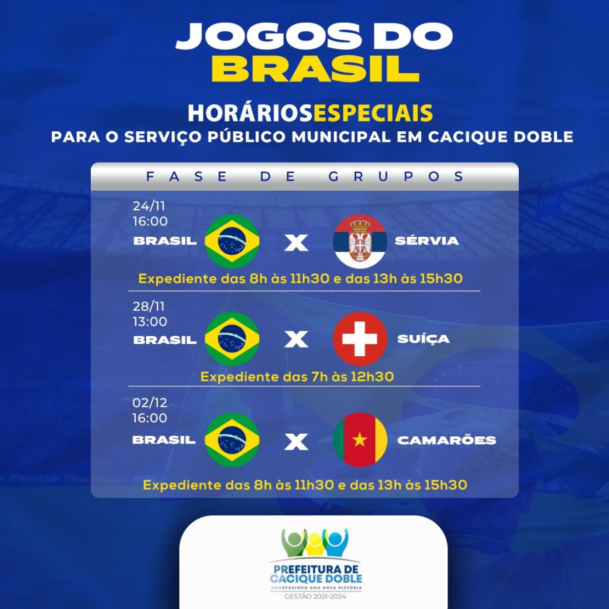 O Decreto não estabelece horários especiais na hipótese de a Seleção Brasileira jogar nas fases seguintes.
