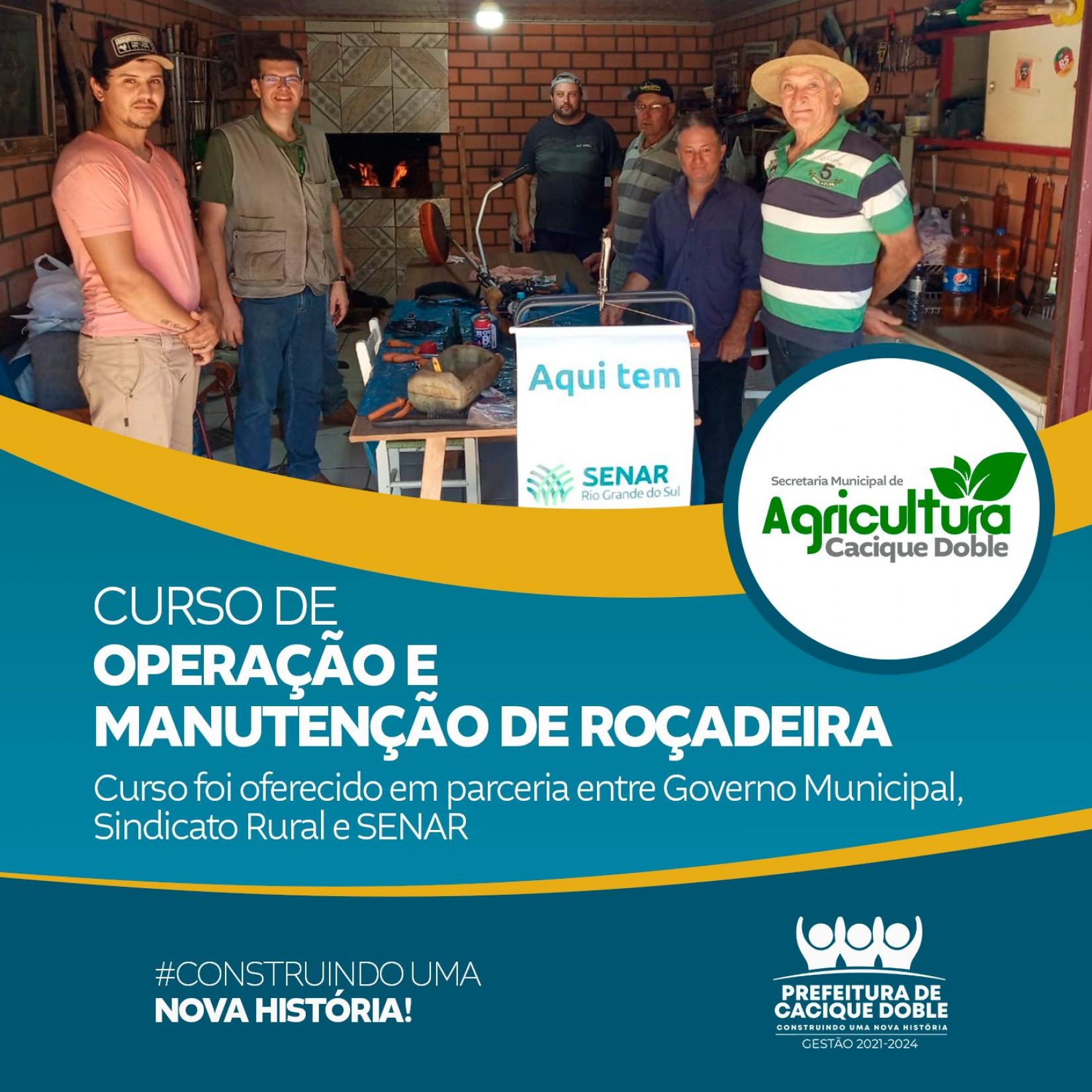 A Secretaria Municipal de Agricultura e Governo Municipal de Cacique Doble ofereceram mais uma oportunidade ao agricultor. O Curso de Operação e Manutenção de Roçadeiras a Diesel foi ministrado pelo instrutor Tiago Marcon do SENAR nos dias 6 e 7 de fevereiro.