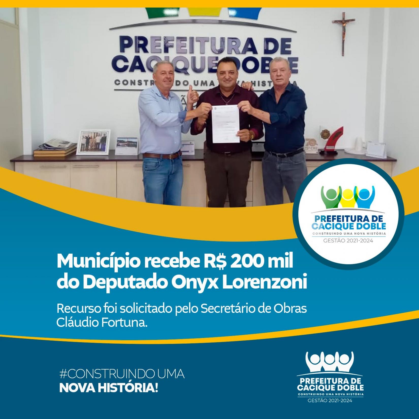 O Município de Cacique Doble foi contemplado com uma Emenda Parlamentar do Deputado Federal Onyx Lorenzoni (PL/RS) no valor de R$ 200.000,00 oriundo do Ministério da Economia.