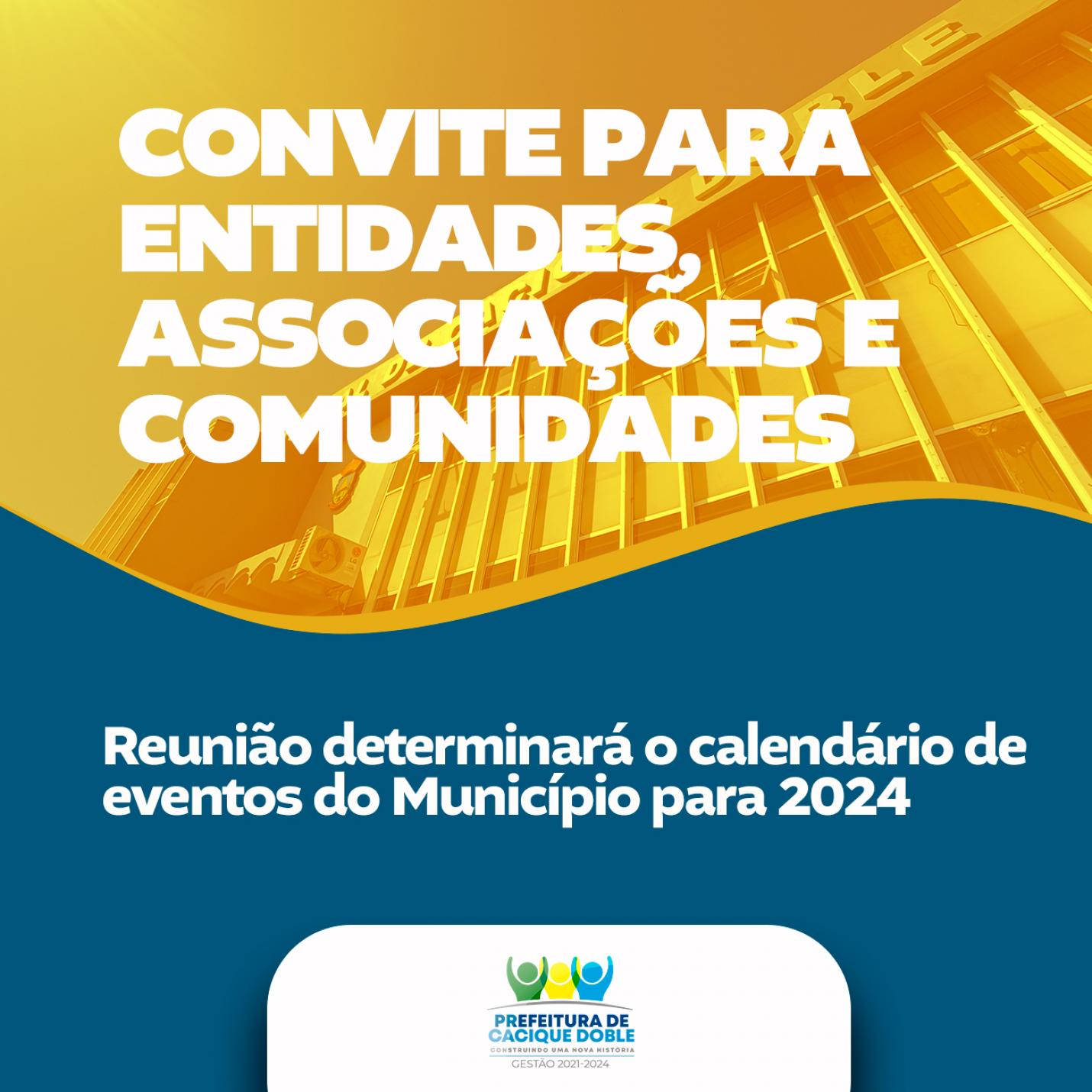 Administração convida Entidades e Comunidades Caciquenses para reunião que trata da organização do Calendário de Eventos para 2024.