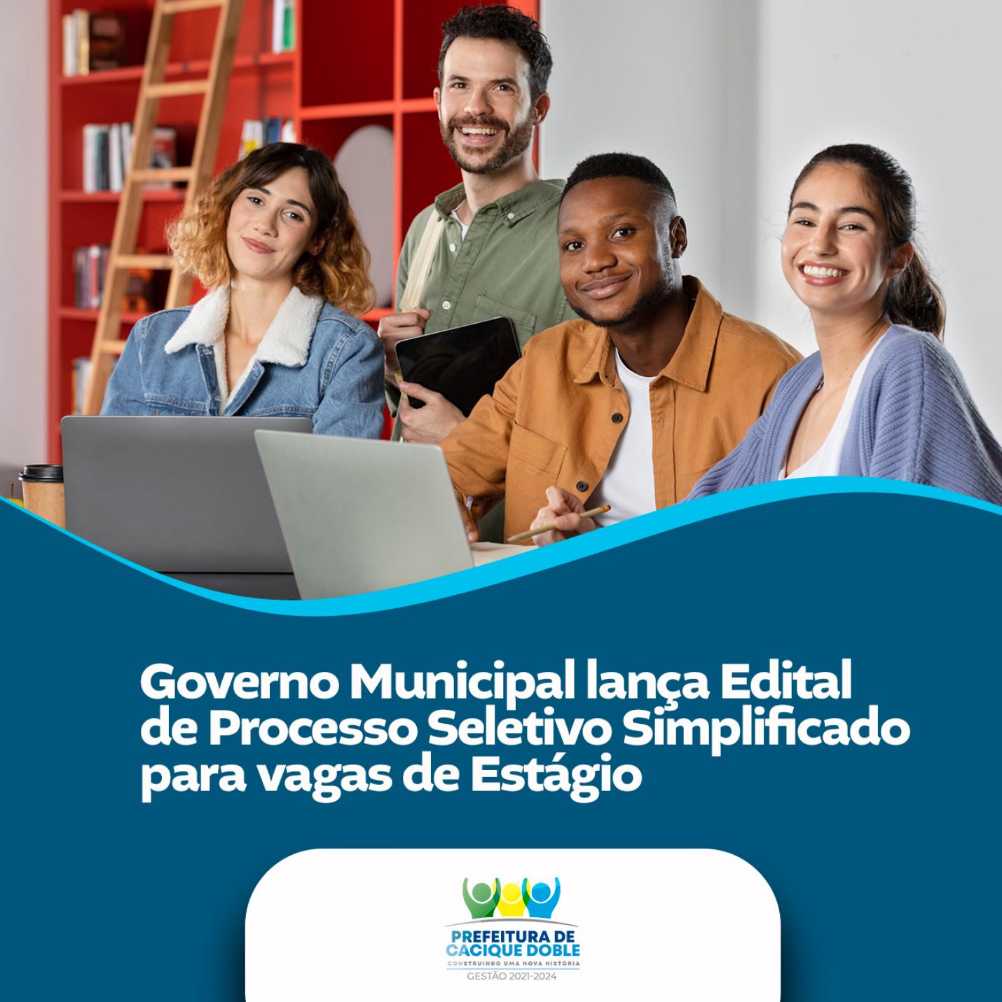 O Governo Municipal de Cacique Doble divulga o Processo Seletivo Simplificado para preenchimento de vagas e formação de cadastro reserva para estagiários.