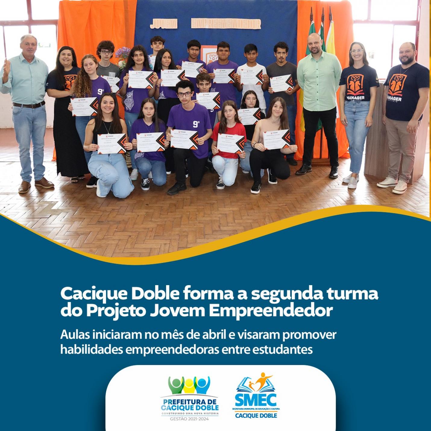No dia 2 de dezembro, no Sport Clube Internacional de Cacique Doble, foi realizada a cerimônia de formatura da segunda turma do Projeto Jovem Empreendedor, desenvolvido pelo Instituto Manager e apoiado pela Secretaria Municipal de Educação do Município.