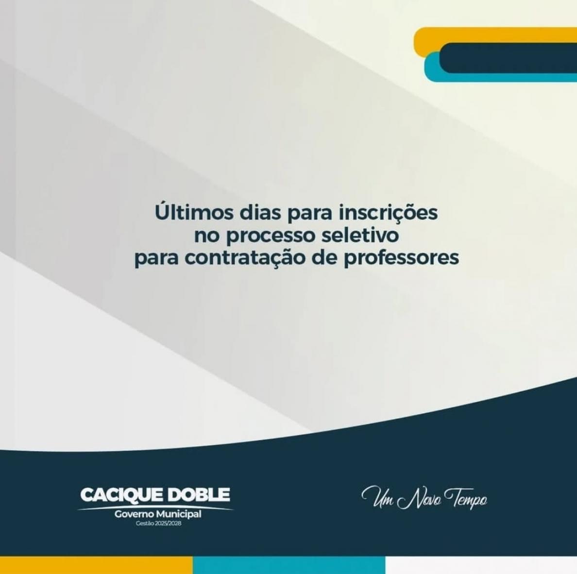 As inscrições estão sendo recebidas exclusivamente na Secretaria Municipal de Educação da Prefeitura Municipal de Cacique Doble, situada na Avenida Kaingang, nº. 292, Centro, Cacique Doble, das 08h às 11h e das 13h30min às 16h30min. A contratação é temporária e terá prazo de vigência de 6 meses, prorrogável por igual período, ficando limitado ao exercício do ano letivo de 2025.