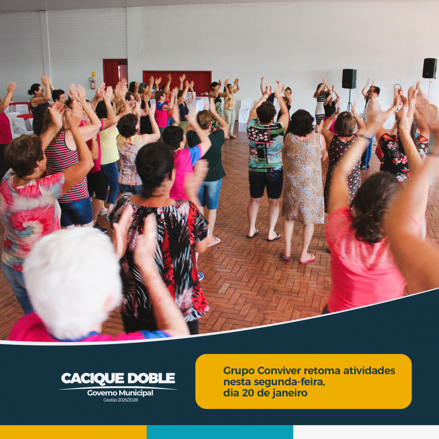 A Secretaria Municipal de Assistência Social de Cacique Doble convida os integrantes do Serviço de Convivência e Fortalecimento de Vínculos para o primeiro encontro do Grupo Conviver de 2025. O evento acontecerá na próxima segunda-feira, 20 de janeiro, às 14h, no Esporte Clube Internacional.
